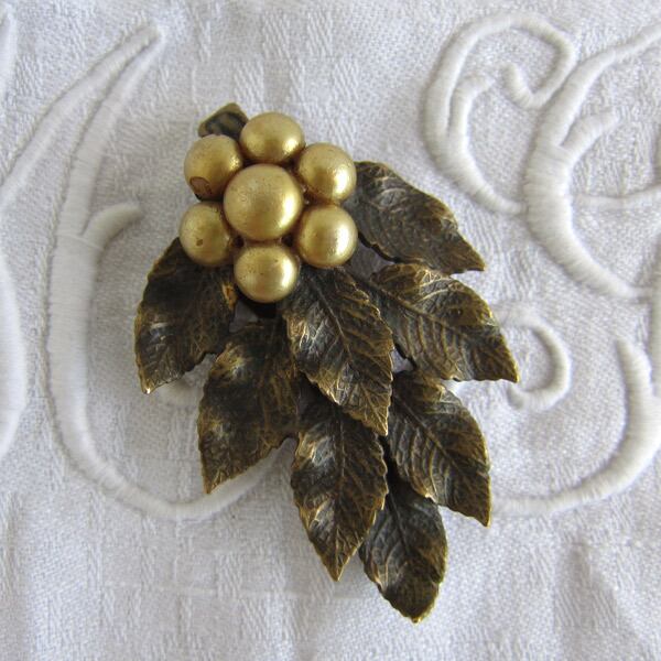 フランスアンティーク市で見つけた花とリーフのクリップブローチ