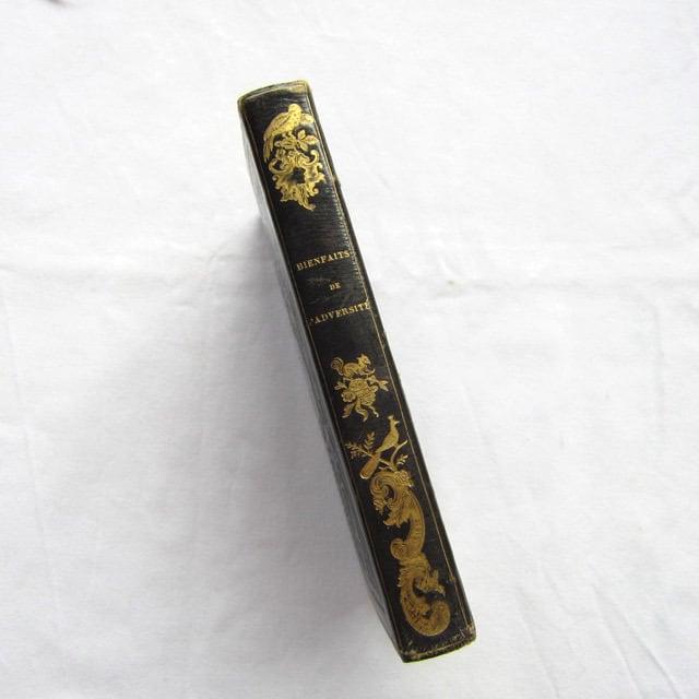 パリのブロカントで見つけた綺麗なエンボス模様が入った革表紙の古書