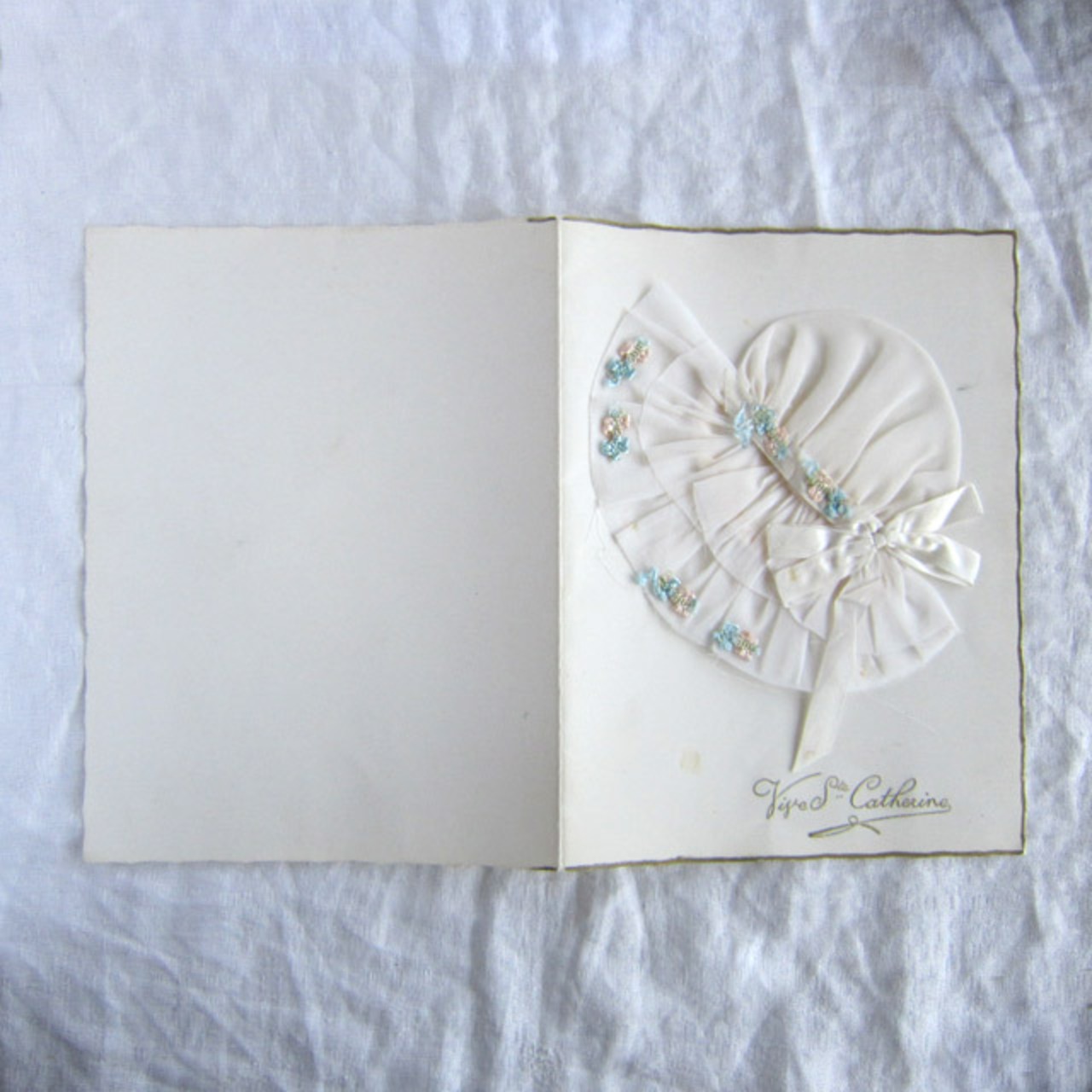 フランスアンティーク カード Ste Catherine 白小花ボネのカード
