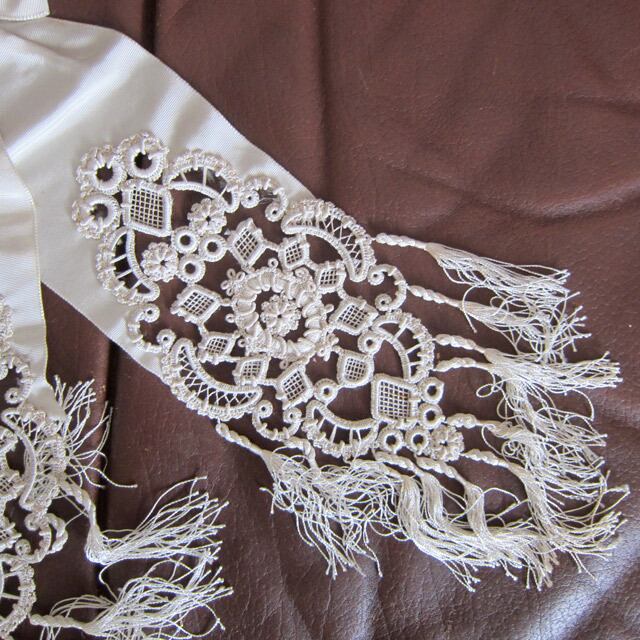 フランスアンティーク 絹リボン 腕章 プルミエコミニョン マクラメ編