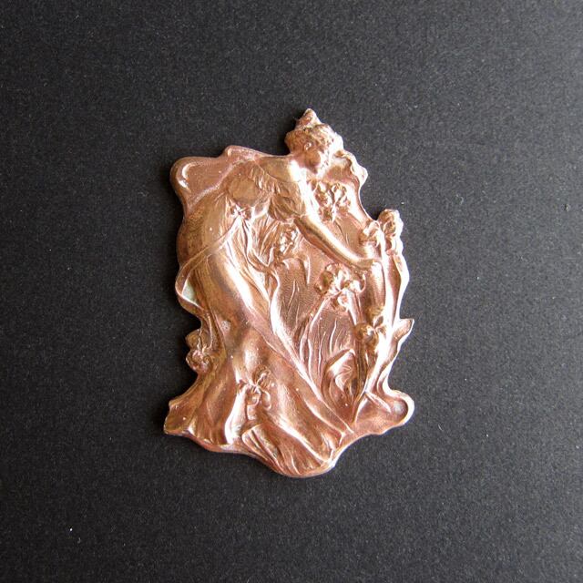 パリのアンティーク市で見つけたアールヌーヴォーの女性が美しい赤銅色プレート